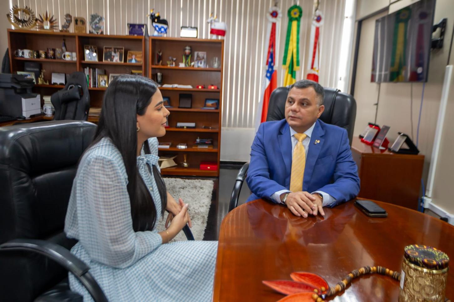 MANAUS (AM) - Em visita institucional realizada nesta terça-feira, 17, na sede do Ministério Público do Estado do Amazonas (MPAM), a deputada estadual Mayra Dias (Avante) reuniu-se com o procurador-geral de Justiça (PGJ), Alberto Rodrigues do Nascimento Júnior, para discutir temas relacionados ao bem-estar da população, além de denúncias que chegam ao seu gabinete.