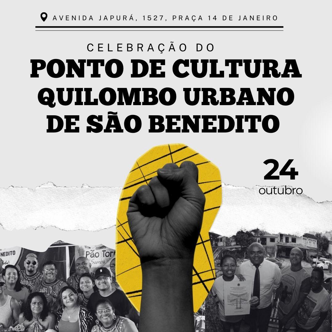 MANAUS (AM) - O Quilombo do Barranco de São Benedito estará comemorando dia 24 de outubro (aniversário de Manaus) o Ponto de Cultura recebido pelo Ministério da Cultura (Minc) com uma programação cultural recheada de batuque, canto, poesia, oficina, dança e muita alegria.