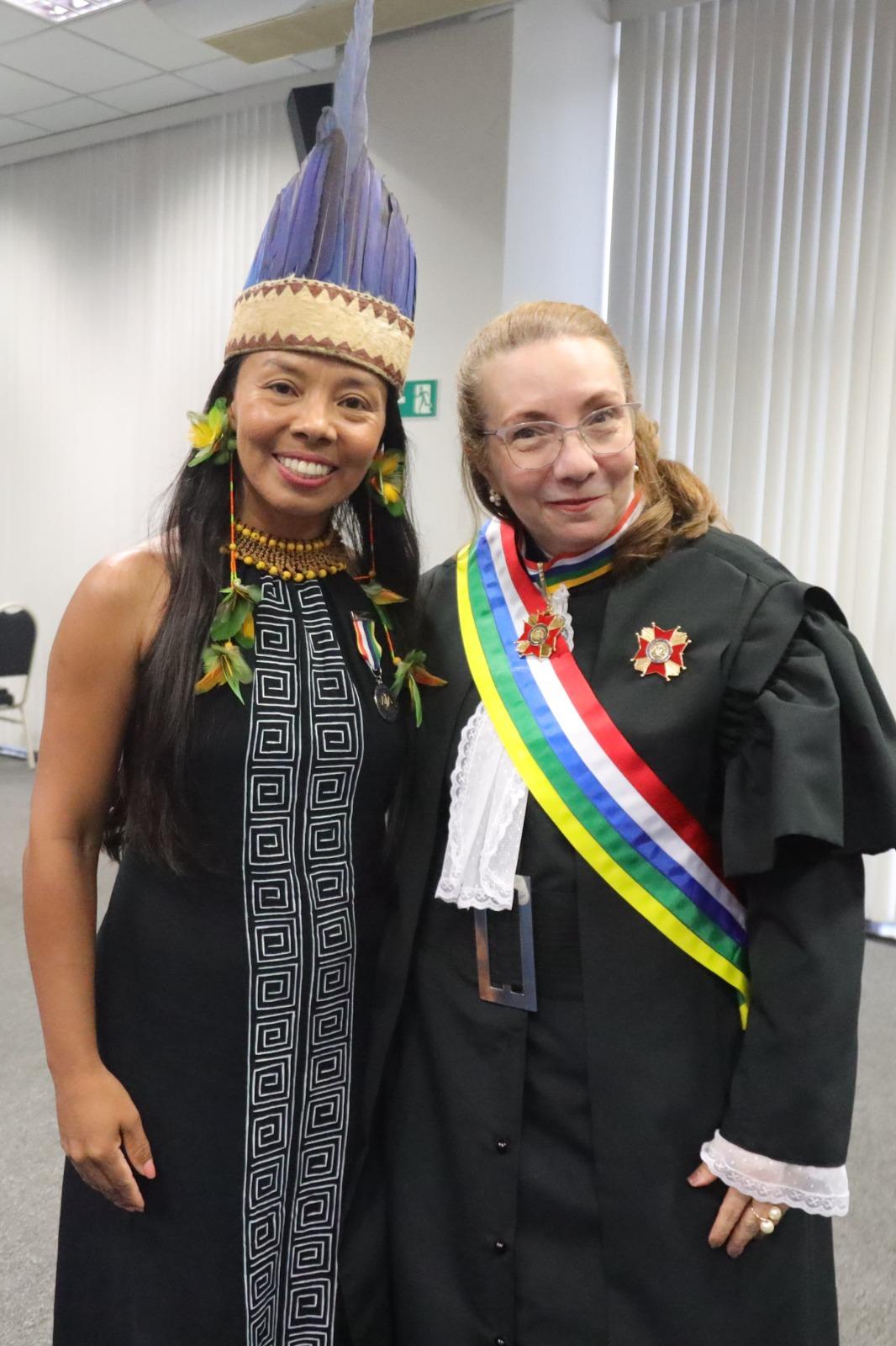MANAUS (AM) - A liderança indígena e ativista ambiental, Vanda Witoto recebeu, na última sexta-feira, 27, a medalha “Ordem do Mérito Judiciário - Grau Cavaleiro”, ofertada pelo Tribunal Regional do Trabalho da 11ª Região (AM/RR) e das mãos da Desembargadora Eulaide Maria Vilela Lins, em cerimônia que aconteceu no Auditório do Fórum Trabalhista de Manaus e foi marcada pela diversidade de perfis sociais dos homenageados. Vanda, que é candidata a vereadora nestas eleições recebeu o reconhecimento pelos serviços prestados para o bem da comunidade.